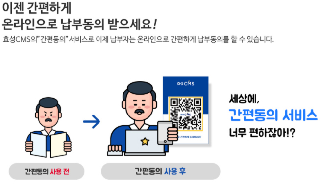 효성CMS+ 온라인 간편동의는 QR코드 또는 URL링크를 통해 더 쉬운 납부동의를 받을 수 있습니다.현재는 후원단체, 사회단체의 기부금 모금으로 보편적을 이용되고 있으며 일반 사업영역에서도 동의서 외의 상거래 계약서가 존재 한다면 쉬게 이용 하실 수 있습니다.